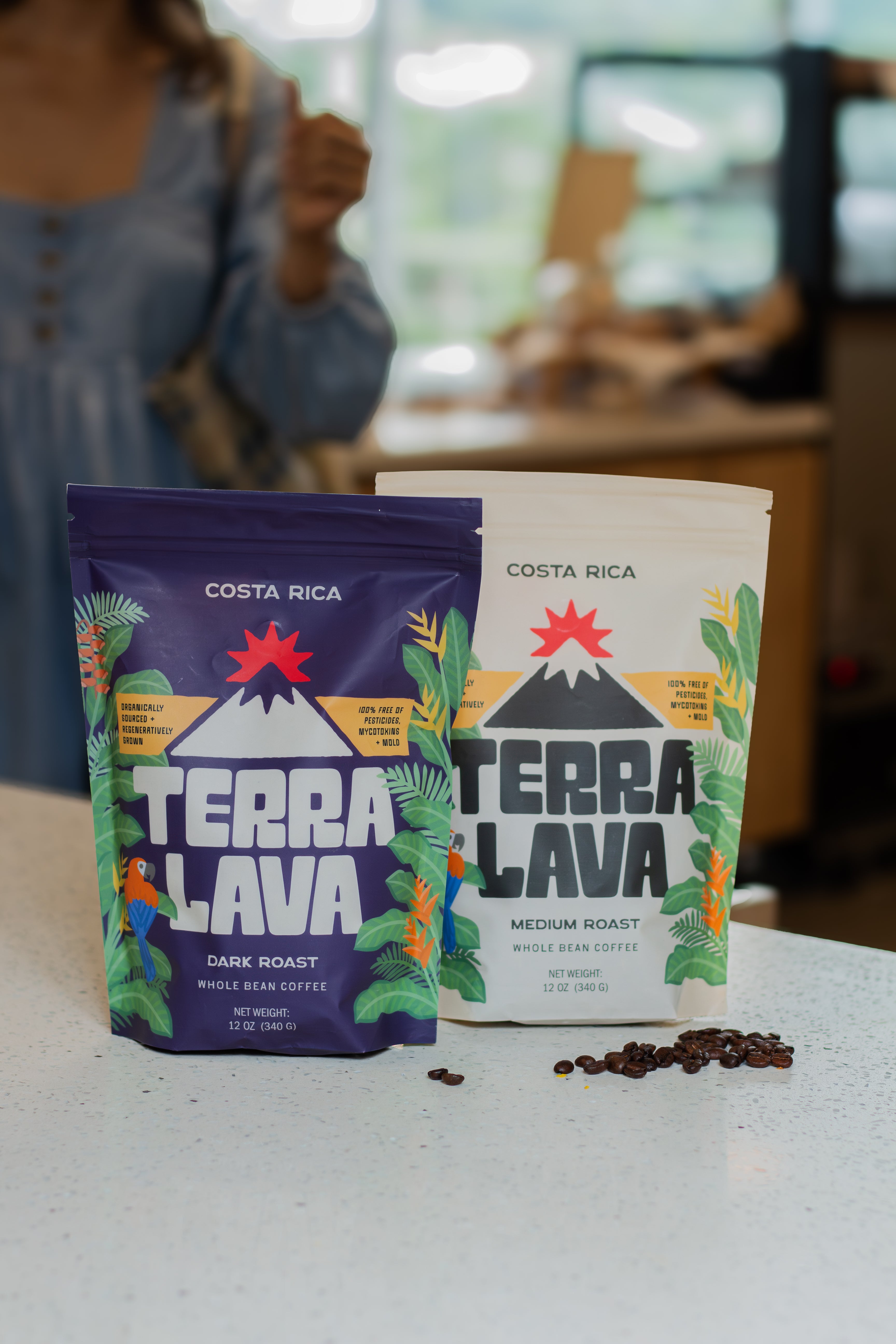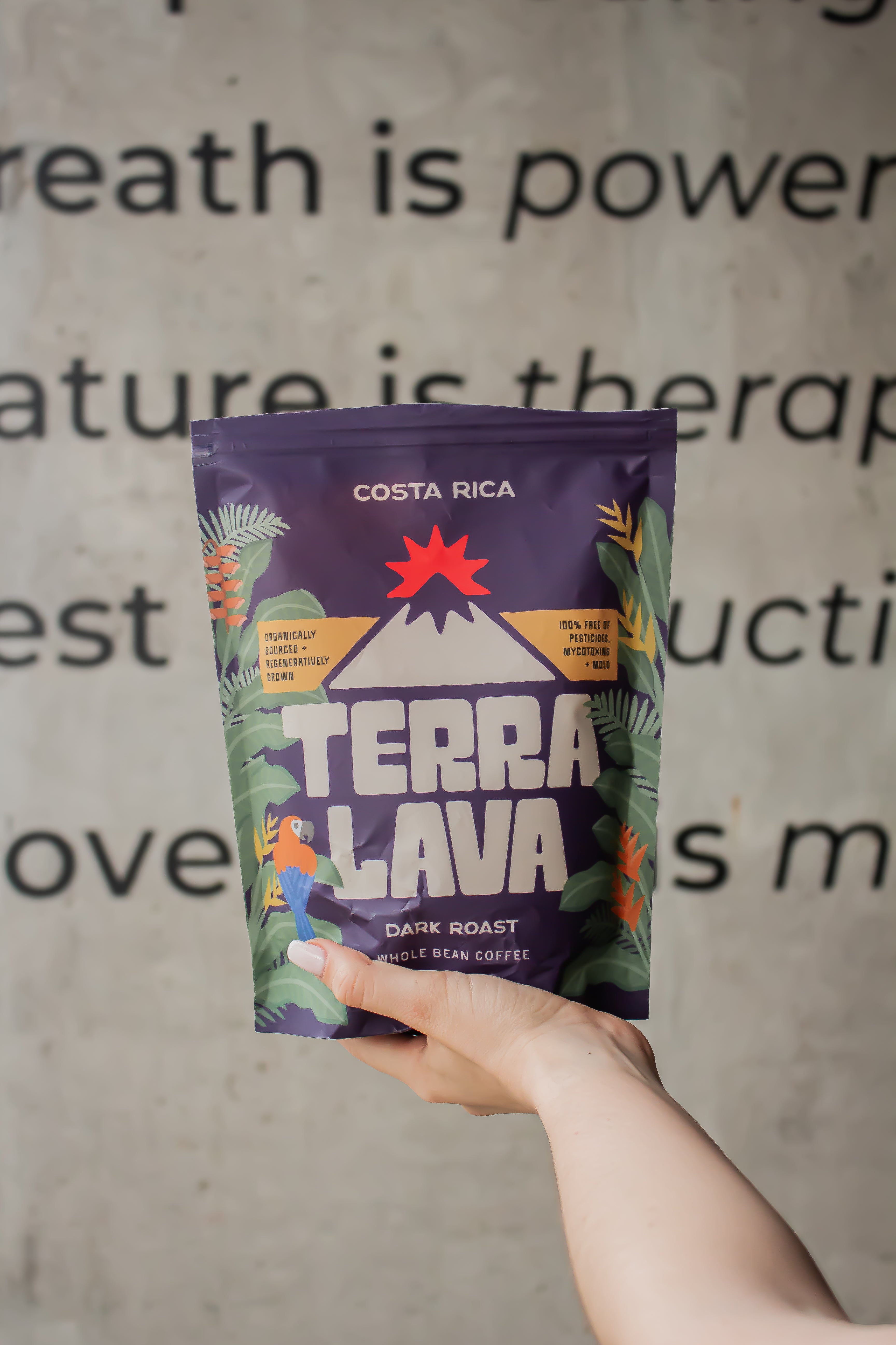 Terra Lava’s coffee beans are regeneratively grown in the volcanic foothills of Turrialba, Costa Rica, on land that has never been exposed to pesticides, herbicides or chemical fertilizers. Each batch is sun-dried and small-batch roasted to preserve the beans’ full flavor, and then third-party tested for mold, mycotoxins, glyphosate and heavy metals.